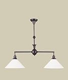 Hudson Valley Lighting 122-OB Edison Collection 2-Light Island Pendant, Old Bronze Finish with White Glass Shades. Hudson Valley Lighting 122-OB Edison Collection 2LT Island Fixture is a classic design with a rich Old Bronze finish complementing White glass shades for a historically simple fixture that will enhance many decor themes in style and grace, and be appreciated for many years to come. 122-OB is 38-Inch long by 14-Inch wide by 29-Inch high (minimum hanging height). Maximum hanging height is 60.5-Inch if using all stems supplied with the fixture (one 3IN, one 6IN, one 12IN, and one 18IN). 122-OB comes one per package, and requires two 100-Watt medium base incandescent bulbs (not included), dimmable using a standard incandescent dimmer. For a more energy efficient alternative, medium base CFL bulbs can be used but may not be dimmable. Hudson Valley Lighting designs and manufactures distinctive lighting. Our products are impeccably designed, featuring outstanding quality and value. They are found in the finest homes and upscale hospitality environments where discerning taste prevails. Our design team performs all design functions in-house. This permits the greatest flexibility in all our product areas. Our style includes strong traditional, vintage, reproduction and contemporary lighting. Hudson Valley Lighting has responded to the growing demand for high quality lighting with the same attention to detail that was evident during the early twentieth century. In addition, we offer a full range of finishes and glass selections to satisfy even the most discriminating customer.