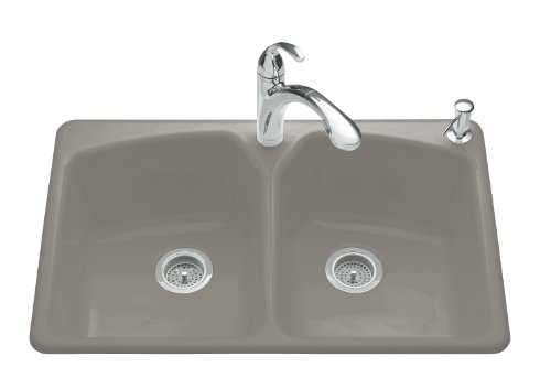 FeaturesClean, contemporary design33"L x 22"WConstructed of KOHLER(R) Cast IronBasin depth: 9"Extra-large double-basin design Kohler K-6491-1-K4 Tanager Self-Rimming Kitchen Sink with Single-Hole Faucet Drilling, Cashmere?