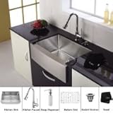 30 inch Single Bowl Stainless Steel Kitchen Sink with Chrome Kitchen Faucet and Soap DispenserKHF200-30-KPF1650-KSD30CH Features: -Add an elegant touch to your kitchen with unique Kraus kitchen combo.-Features dual pull-out spray head with an aerated flow or a powerful spray.-Spring-tensioned retractable hose.-Spout swivels 180-degrees.-Number of Holes: 3.-Contains sedal drip-free ceramic cartridge.-Hermetically sealed with adjustable temperature and flow rate limitation.-Single-lever water and temperature control.-Single-hole, top-mount installation.-Water pressure tested for industry standard.-Standard US plumbing connections.-2.2 GPM flow rate.-ADA compliant.-Installation in a 1.375-inch hole.-Spout reach: 7.9 inches.-Hose measures 24 inches long.-Swivels 360 degrees.-Refillable from above.-Holds 14 ounces of liquid.-Measures 2.1 inches high x 3.5 inches deep.-Requires 1.25-inch hole.-Fits 30 inches cabinet.-Padded and stone guard undercoated insulation over a rubber pad reduces noise while sink is in use.-Features unique Kraus 0.75-inch radius curved corners for easy cleaning and a stylish look.-Certified and Listed by UPC, cUPC, CSA, IAPMO, ANSI and SCC. Includes: -All mounting hardware and hot/cold waterlines are included.-Stainless steel bottom grid with protective feet and bumpers, Stainless steel basket strainer and Dish towel are included.-Mounting and installation brackets, cutout template are included. Construction: -Faucet is constructed from solid brass with stunning triple plated chrome finish.-Kraus kitchen sink boasts 16-gauge premium grade T-304 stainless steel construction with an 18/10 chromium/nickel composition. Color/Finish: -Scratch-resistant commercial-grade premium satin finish. Specifications: -Overall sizes: 10 inches H x 20 inches W x 29.75 inches D.-Bowl sizes: 10 inches H x 16 inches W x 27 inches D. Dimensions: -Faucet height: 15.5 inches.-Spout height: 8.1 inches. Collection: -Kitchen combo collection. Warranty: -Manufacturer provides limited lifetime warranty.-Manufacturer provides limited lifetime warra