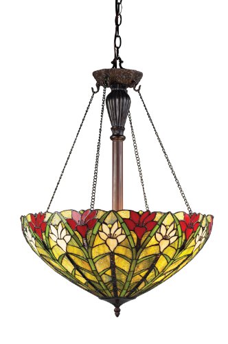 #A warm glow is cast from this down hanging pendant, which features flower designs of red and white against a soft, natured inspired background. Perfect for any room in the house, this fixture is finished in chestnut bronze.