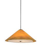 #Single Light Cone PendantFused and slumped plate glass shade, warm with color and pattern, highlighted with metal detail and suspended from a round canopy. Glass disc diffuser provides a glare free wash of light. Black, satin nickel and white finish options highlighted with satin nickel detail; antique bronze highlighted with antique bronze detail. Includes 120 volt, 100 watt A19 medium base lamp or 18 watt GX24Q-2 base triple tube compact fluorescent lamp (electronic ballast included). Fixture is provided with six feet of field-cuttable cable. Incandescent version dimmable with standard incandescent dimmer.Finish Options:Antique Bronze, Black, Satin Nickel, WhiteColor Options:Beach Amber, Sand, Surf WhiteLamping Options:1 100w Medium base Incandescent, 1 18w GX24q-2 base Compact FluorescentShade Size:W 19", H 7"